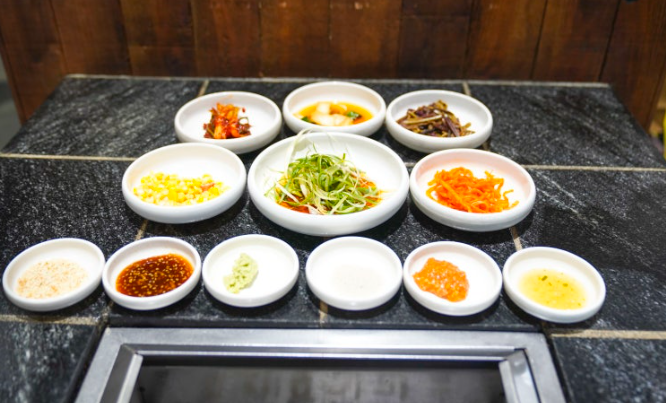 신중산간의 메뉴는 정말 다양해요. 일반 흑돼지 구이 외에 고추장 흑돼지 삼겹살은 이곳의 시그니처 메뉴입니다. 매콤하면서도 달콤한 양념이 쫀득한 흑돼지 삼겹살과 만나 환상의 맛을 자랑해요. 고추장 양념이 고기에 깊숙이 배어들어 풍미가 남다르죠. 직원분들이 직접 고기를 구워주기 때문에 타지 않고 가장 맛있는 상태로 즐길 수 있는 것도 큰 장점입니다. 기본 반찬도 정갈하게 차려지며, 셀프바가 있어 부족한 반찬을 마음껏 가져다 먹을 수 있어 편리해요.